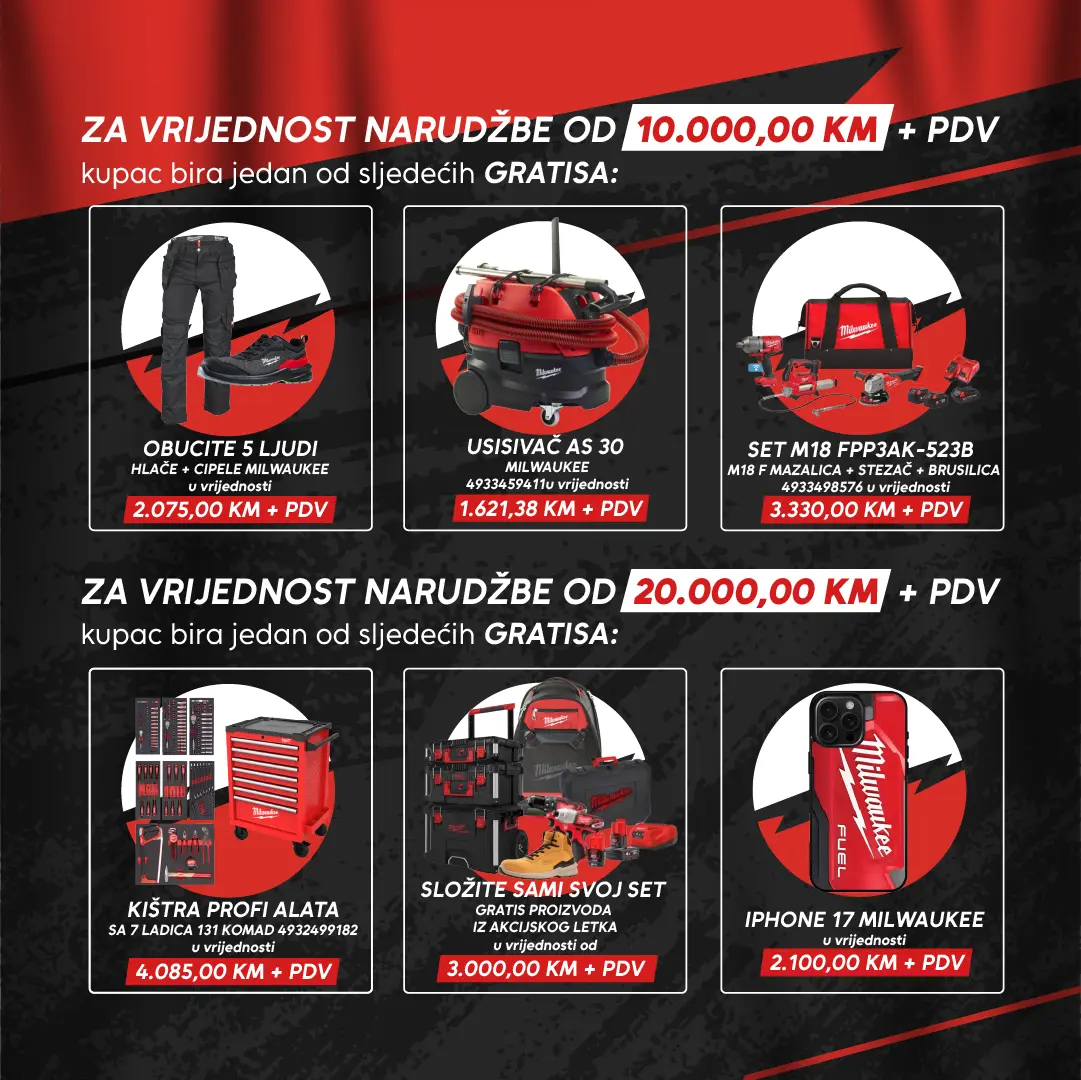 - OBUCITE 5 LJUDI – HLAČE + CIPELE MILWAUKEE u vrijednosti 2.075,00 KM + PDV