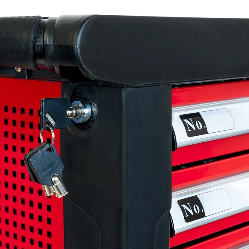 KOLICA SA ALATOM 217 KOM 7 LADICA AIRPRESS – Izdržljive ručke prekrivene antislip kompozitom tipa Soft Grip. Stabilna, napravljena od materijala najbolje kvalitete, radna ploča omogućava montažu dodatnih dodataka poput alata, zidova, držača ili stega.