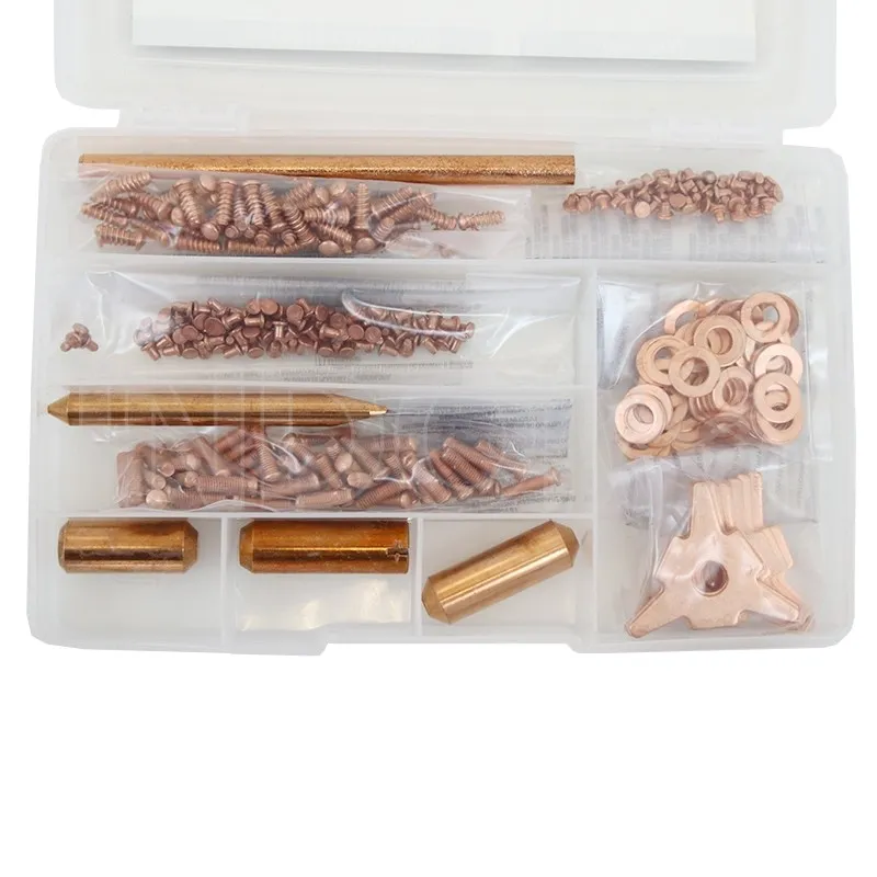 SET ZA SPOTTER STUDDER BOX TELWIN 143780 komplet dodataka i potrošnog materijala za tačkasto (spot) zavarivanje i „studder“ tehniku koja se koristi u auto-limariji za izvlačenje udubljenja i pričvršćivanje elemenata tokom popravke.